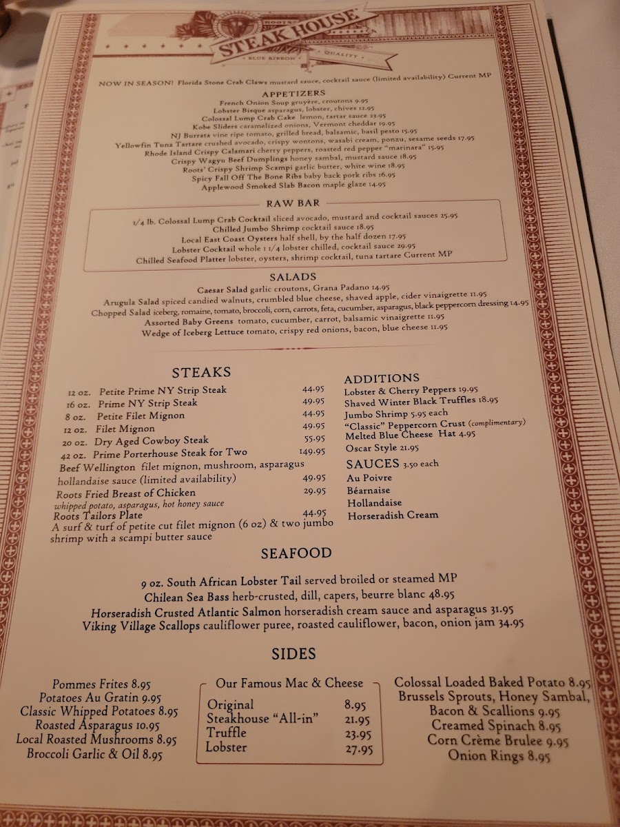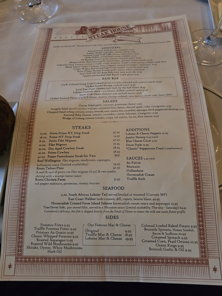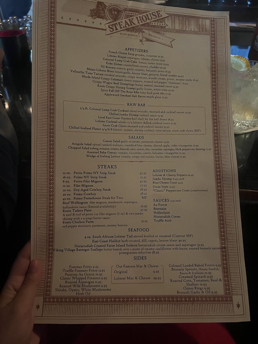 Welcome to Roots Steakhouse, where culinary excellence meets an inviting atmosphere in Summit, NJ. Nestled at 401 Springfield Ave, this steakhouse redefines fine dining with a menu that boasts an array of exquisite options. Start your meal with the Chilled Seafood Platter or Lobster Bisque, setting the stage for a memorable culinary journey.